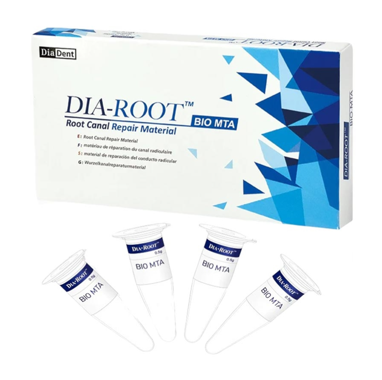 DIA-ROOT BIO MTA is a hydrophilic biocompatible pure white powder that promotes cementogensis and forms a hermetic seal inside the root canal. It has excellent biocompatibility, outstanding sealing capability, and easy handling properties.